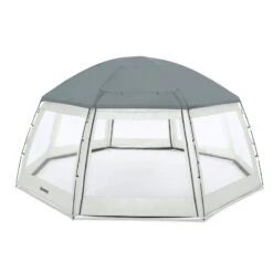 Créez votre propre oasis dans votre jardin avec le dôme rond Flowclear compatible avec les spas gonflables et les piscines jusqu’à 4,88 m. Ce dôme vous apportera de l’intimité et vous protègera de la pluie, du soleil et autres éléments météorologiques. Ce dôme est monté comme une tente et sa conception unique à 2 épaisseurs permettra de garder votre spa ou piscine propre.