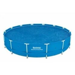 Couverture solaire de piscine Bestway Steel Pro de 366 cm de diamètre.rnCette couverture solaire ronde de 350 cm de diamètre a Ă©tĂ© créée par Bestway pour rĂ©duire les coĂ»ts et les efforts d’entretien des piscines mĂ©talliques en extĂ©rieur. Cela sera possible car, en limitant l’entrĂ©e d’insectes, de saletĂ©s et de poussières, vous devrez utiliser une plus petite quantitĂ© de produits pour le nettoyage. De plus, son utilisation aura un impact positif sur la pompe Ă eau, puisqu’elle n’aura pas besoin de fonctionner Ă pleine capacitĂ©.