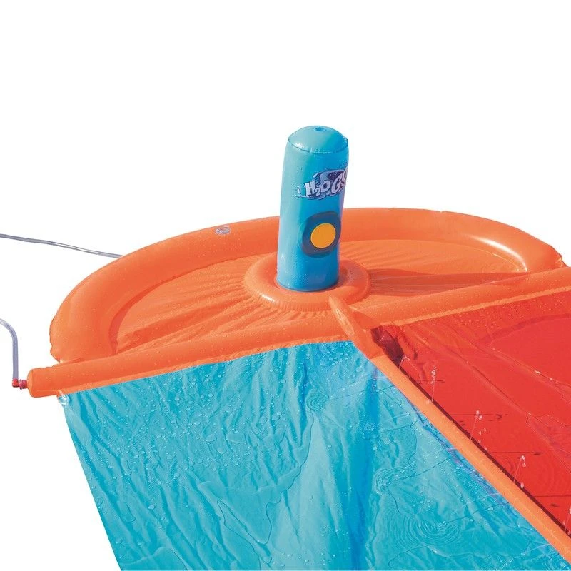Conçue pour que les enfants jouent et se divertissent loin de chez eux, le tapis de glisse gonflable H2OGO Dragstrip Splash Slide est conçue uniquement pour s’amuser Ce tapis glissant de 549 cm a un arroseur d’eau intĂ©grĂ© qui se connecte directement Ă un tuyau et crĂ©e un effet de cascade qui maintient la piste glissante. La piste a deux voies pour que les enfants puissent courir avec leurs amis et se retrouver trempĂ©s. Appuyez sur le bouton Ă l’autre extrĂ©mitĂ© de la piste coulissante pour pulvĂ©riser de l’eau. Celui qui appuie dessus en premier gagne. La petite piscine Ă la fin recueille l’eau lors de l’atterrissage et dispose Ă©galement d’une valve de vidange pour remplir et vidanger confortablement l’eau.
